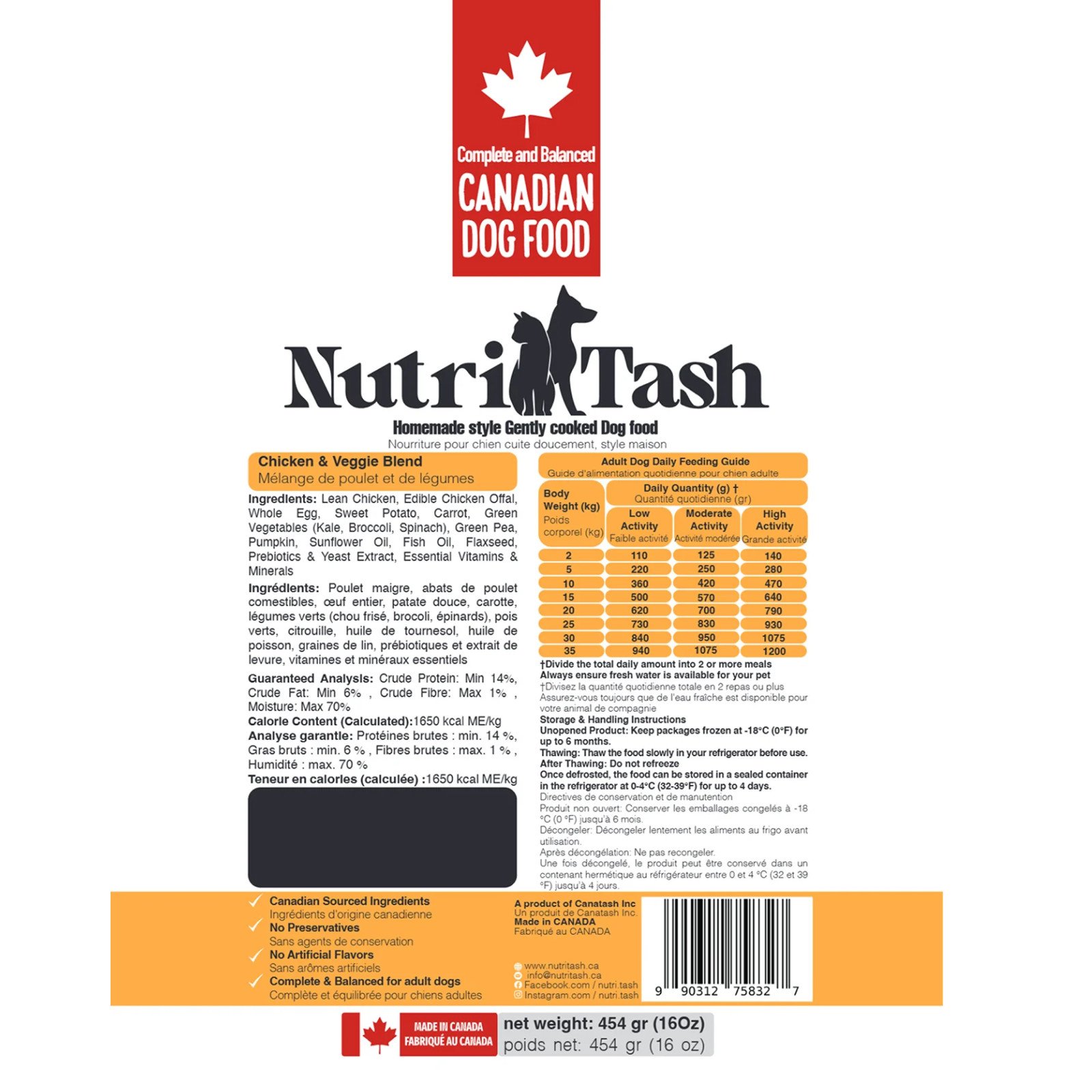 NUTRITASH Gently Cooked Chicken & Veggie Blend Dog Food is a wholesome, human-grade meal made with premium lean chicken and fresh vegetables to support your dog’s overall health and vitality. Gently cooked to preserve essential nutrients and natural flavors, this highly digestible recipe is ideal for adult dogs of all breeds, helping promote strong muscles, healthy digestion, and sustained energy.