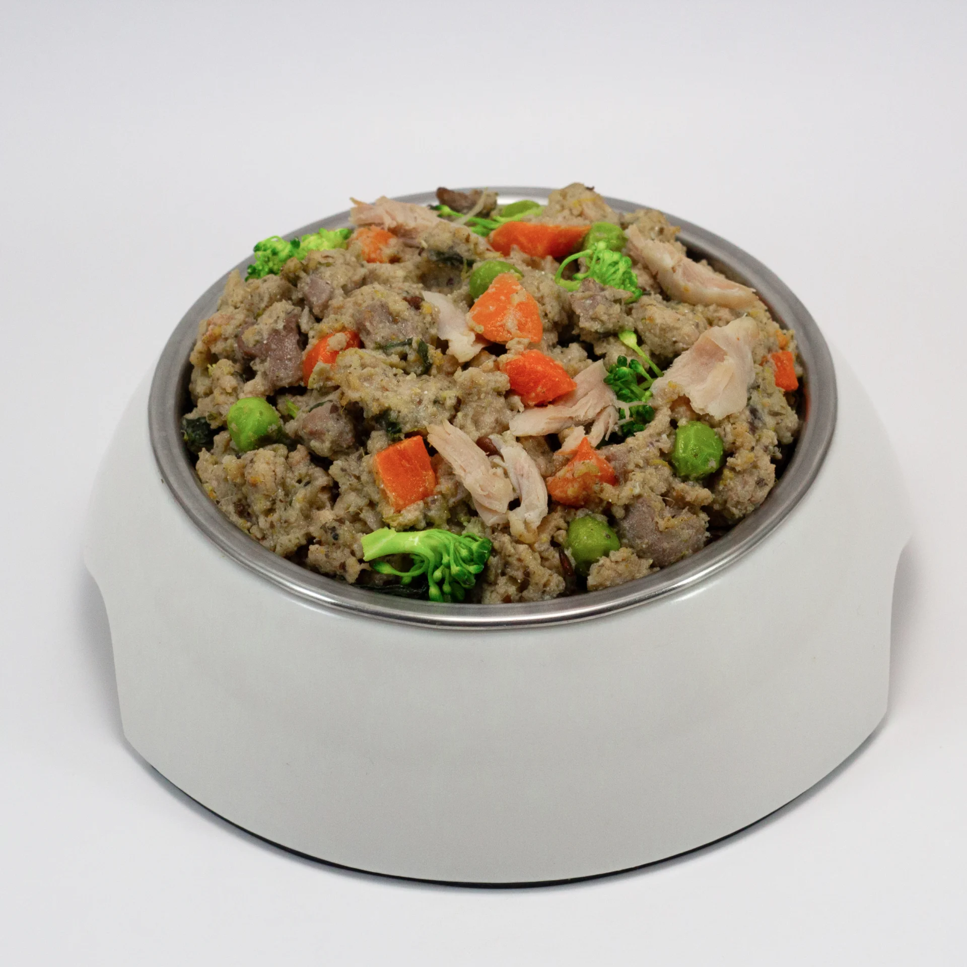 Ground Lean Chicken, Edible Chicken Offal, Whole Egg, Carrots, Broccoli, Green Beans, Sweet Potatoes, Pumpkin, Ground Flaxseed, Nutritious Grains, Yeast Autolysate Probiotic, Taurin, Choline Chloride, Zinc Proteinate, Iron Proteinate, Vitamin E Supplement, Manganese Proteinate, Copper Proteinate, Selenium Enriched Yeast, Thiamine Mononitrate, Niacin Supplement, Calcium Pantothenate, Riboflavin Supplement, Biotin, Vitamin A Supplement, Pyridoxine Hydrochloride, Folic Acid, Vitamin B12 Supplement, Vitamin D3 Supplement, Calcium Iodate.